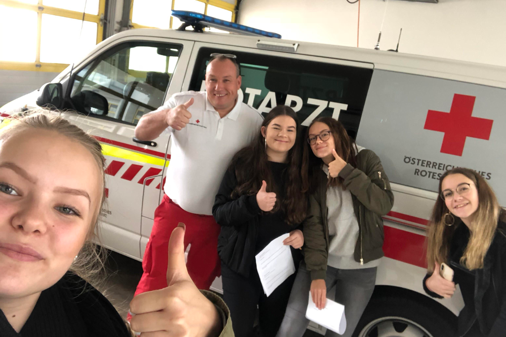 Mit einem Stationenplan und 1 Euro in der Hand machten sich am Donnerstag, 25.9., die Schülerinnen des röm.kath. Religionsunterrichtes in sechs Gruppen auf den Weg, um Orte der Menschlichkeit in Mürzzuschlag zu erkunden. So lernten die Schülerinnen das Rote Kreuz, die Stadtgemeinde und das Landespflegezentrum sowie die Pfarre Mürzzuschlag, das Lerncafe und den Kleiderladen kennen.